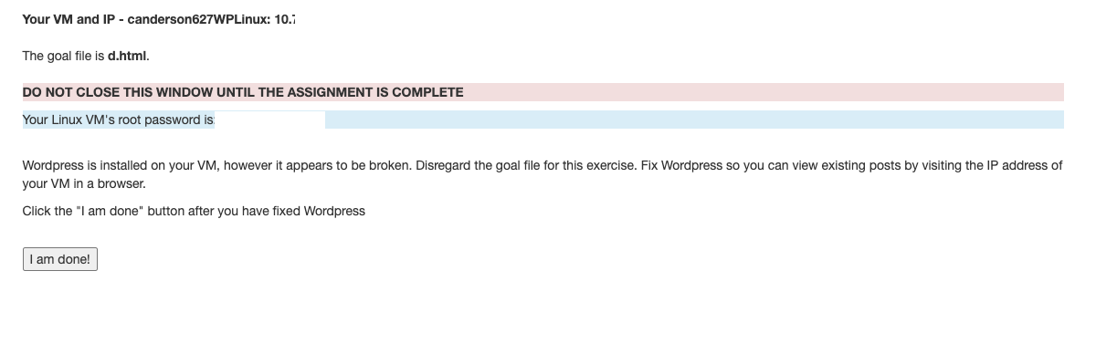 User clicks "Begin Exercise" after waiting for VM to spin up and get IP